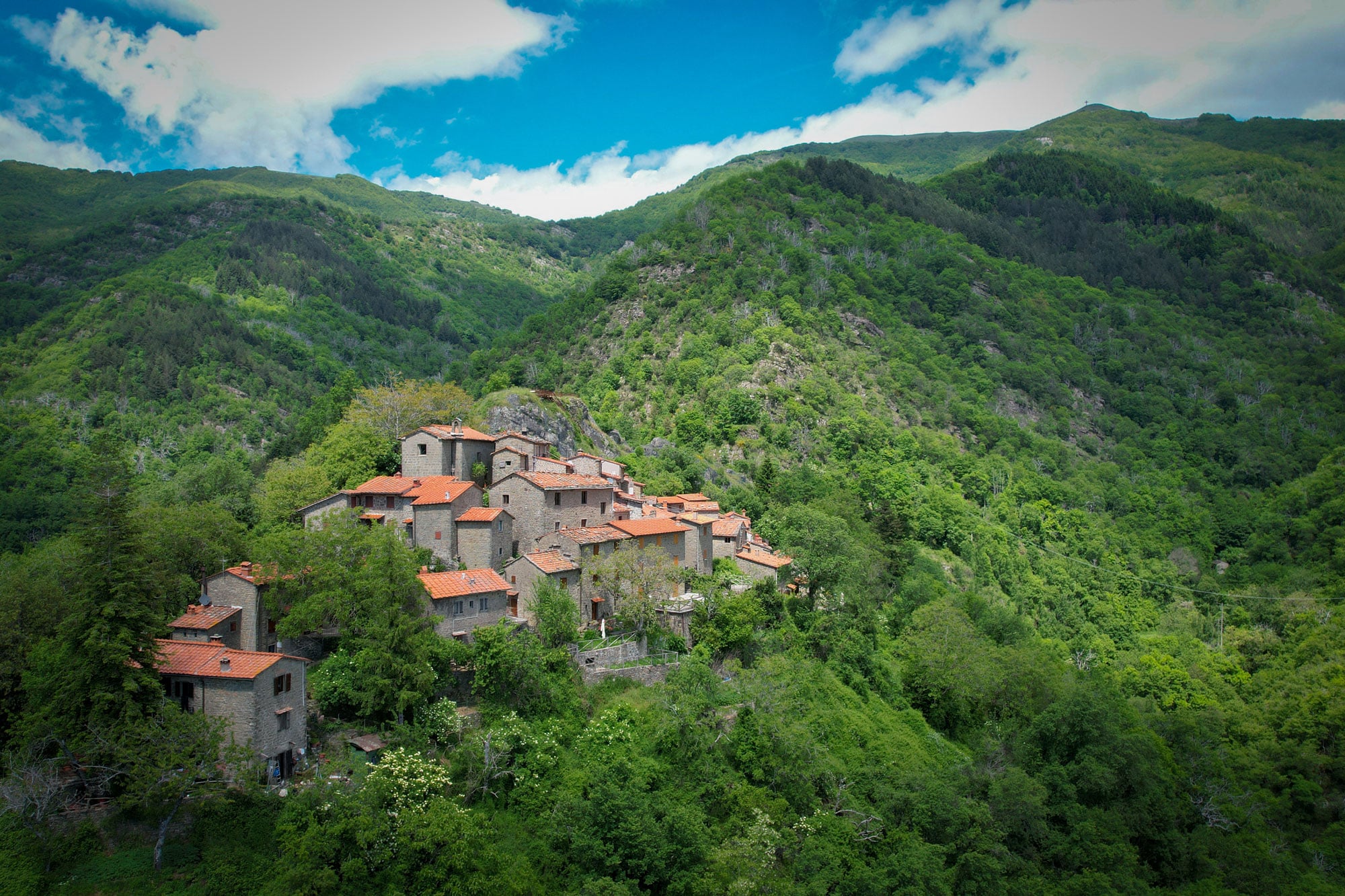 Il borgo formato da piccole case in pietra arroccate su uno sperone roccioso