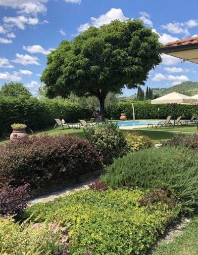 Immerso tra ulivi e vigneti, in posizione panoramica e tranquilla nel cuore dell’alta Valle dell’Arno